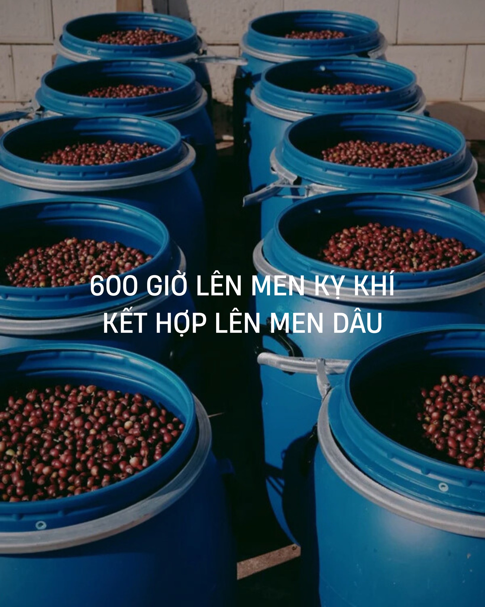 Đây chính là “trái tim” của hương vị. Thay vì phơi khô nhanh, hạt cà phê trải qua 600 giờ lên men kỵ khí (600-hour anaerobic process).